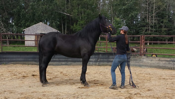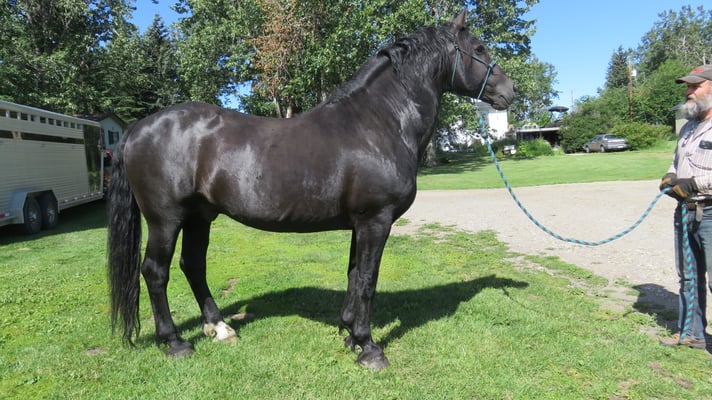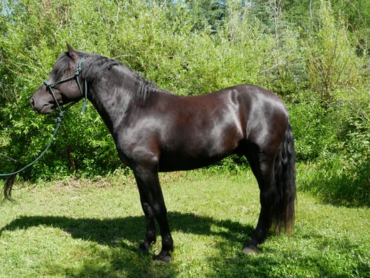 Canadian Horse: Young all black, good-looking, tall and very friendly stallion.