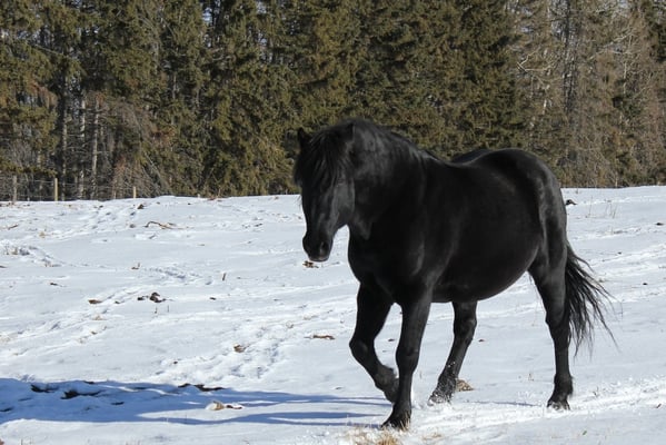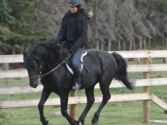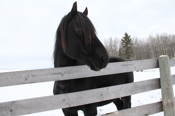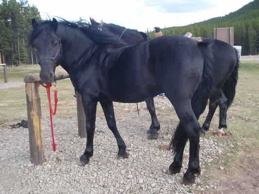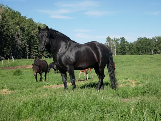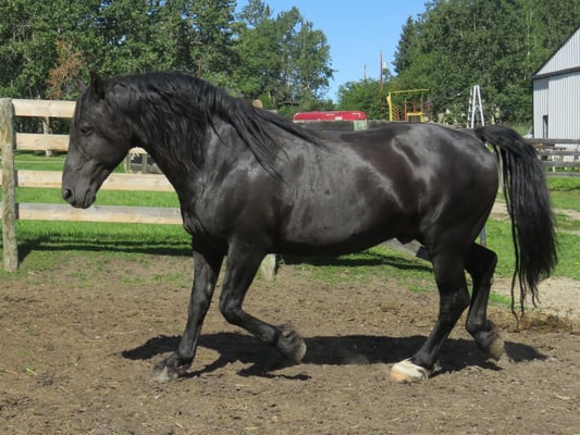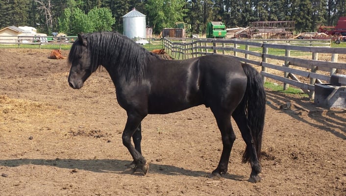 Canadian Horse: All black, very friendly, quiet and right at the fence