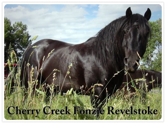 Canadian Horse: Good looking, friendly stallion trained to ride and drive. Each year he has outstanding foals.
