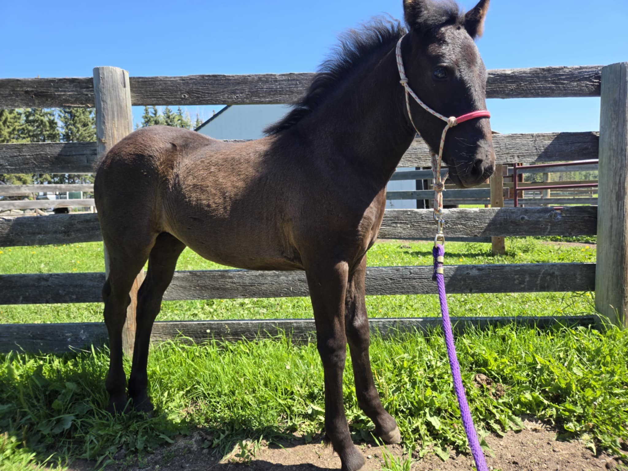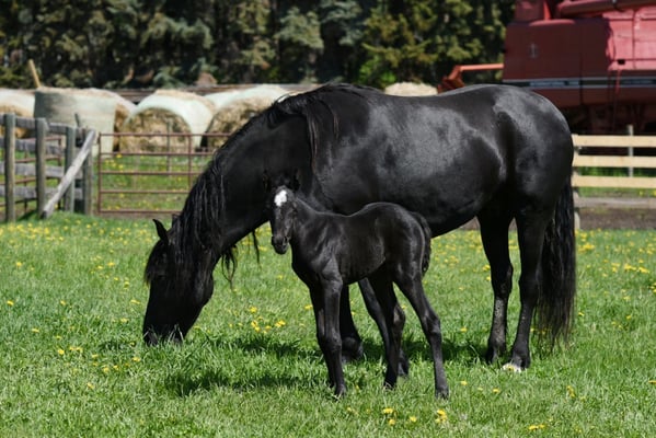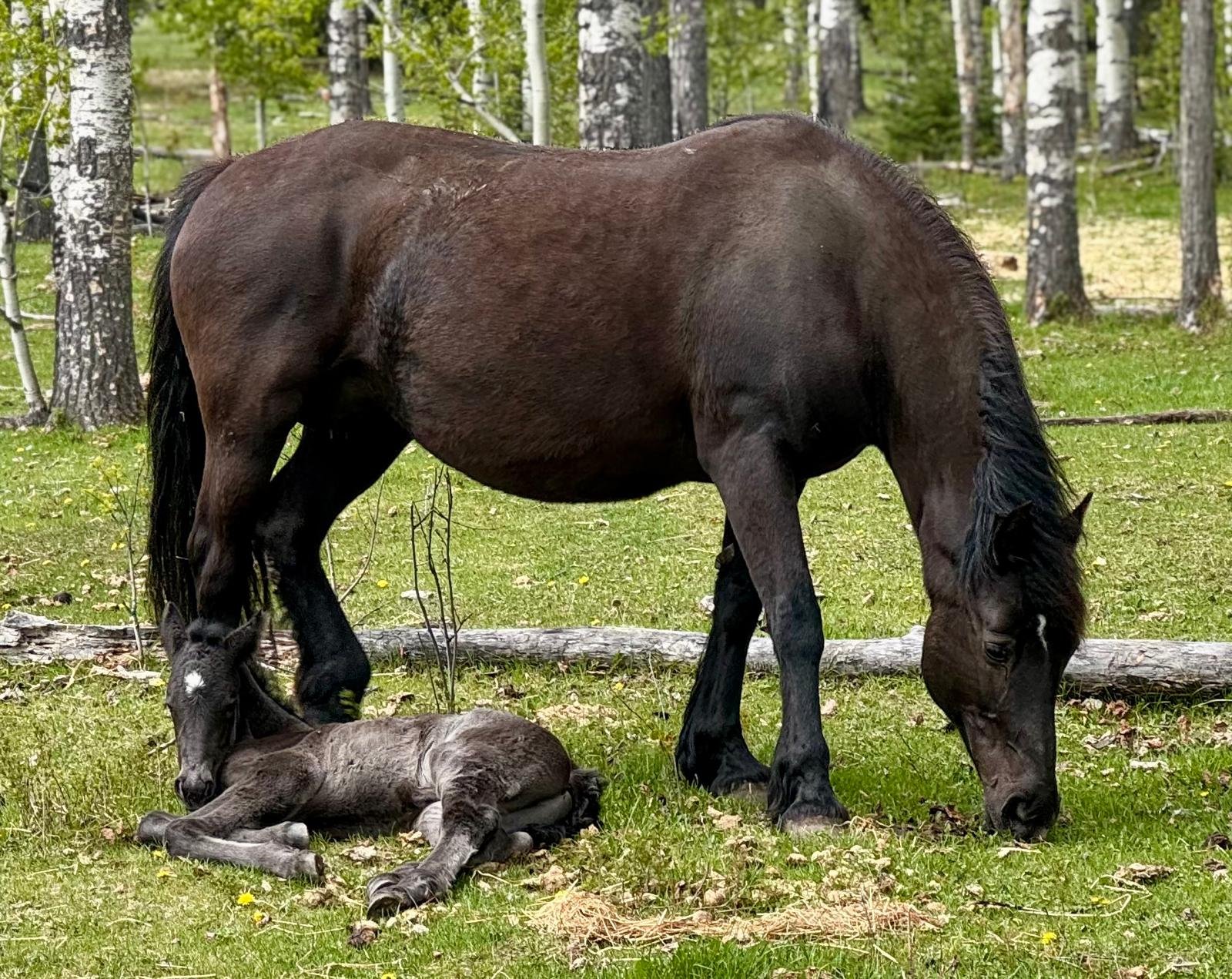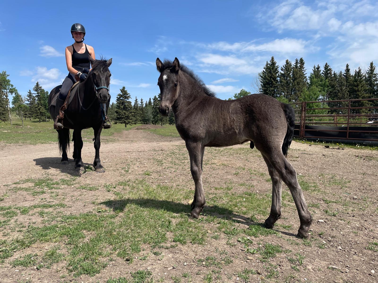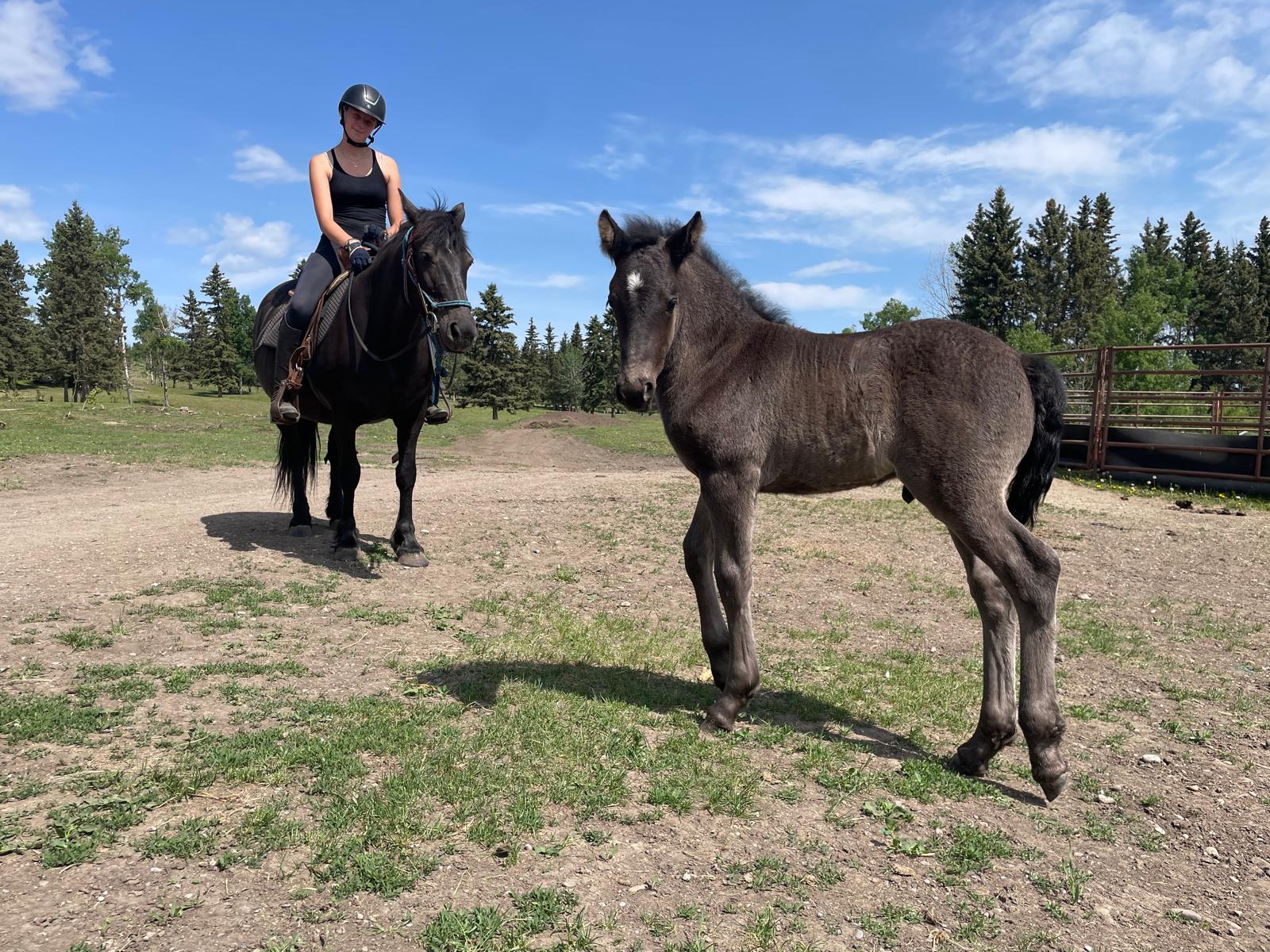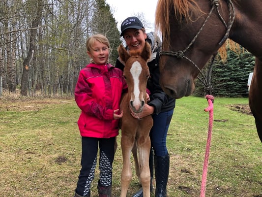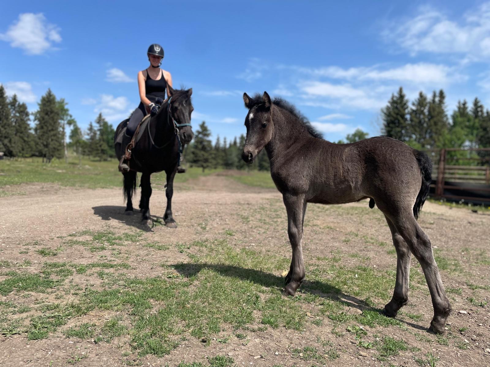 Every one of our purebred Canadian foals are handled from a young age. They can be sold as halterbroke, with trimmed hooves and easy to trailer. Our babies grow up in a herd environment with other foals on a big pasture. Hence they are used to other horses and have lots of room to run, play and learn.