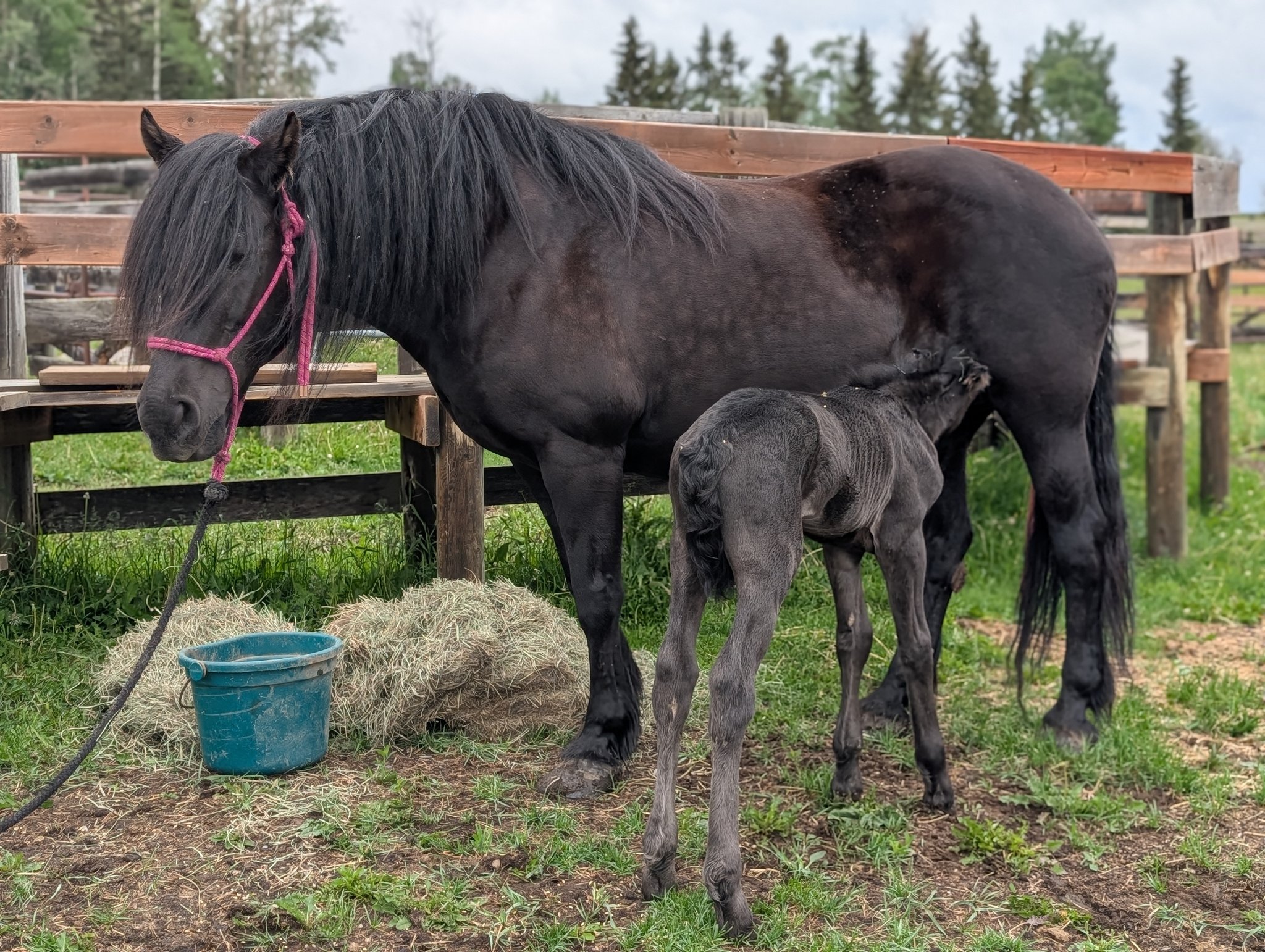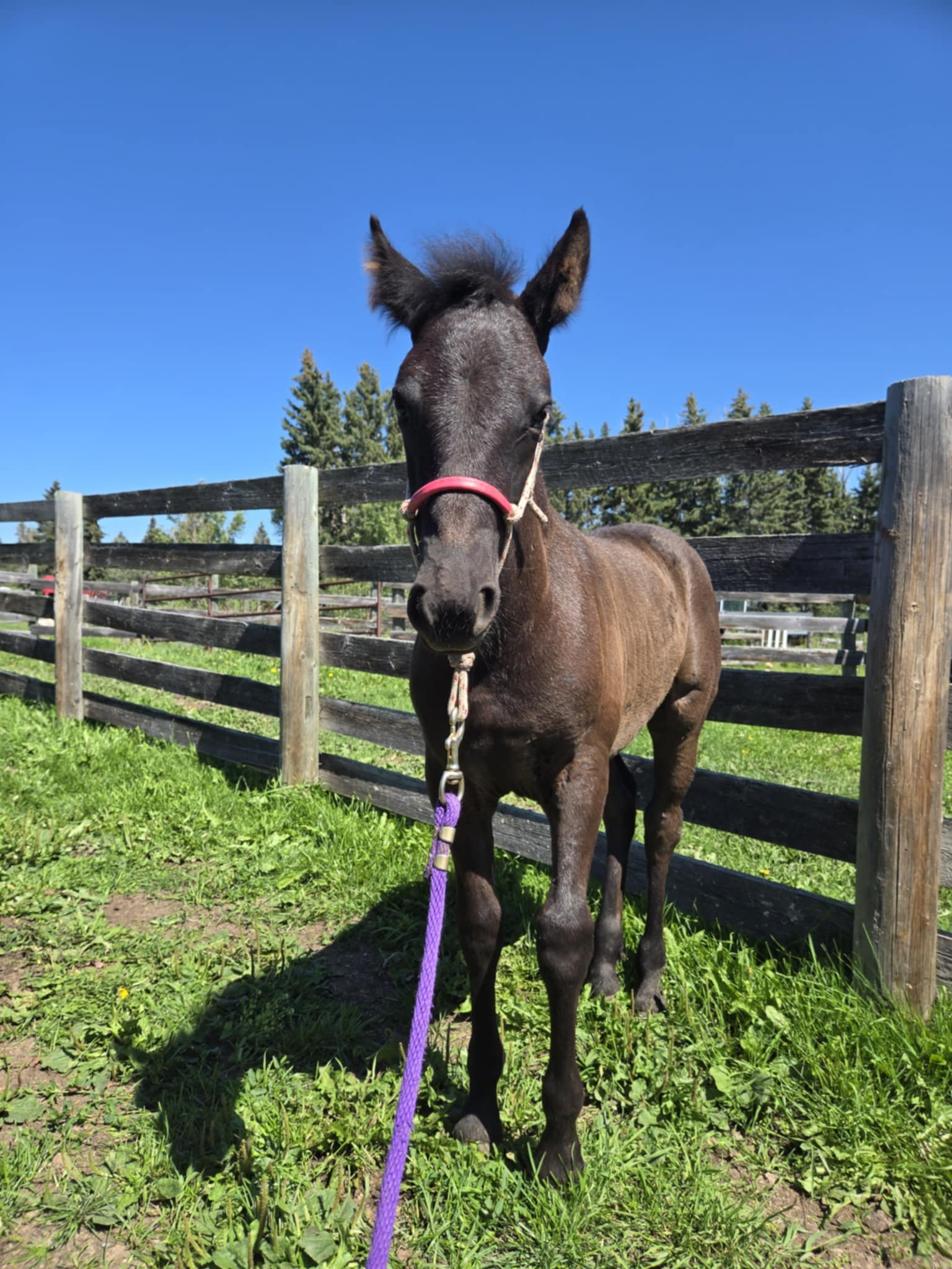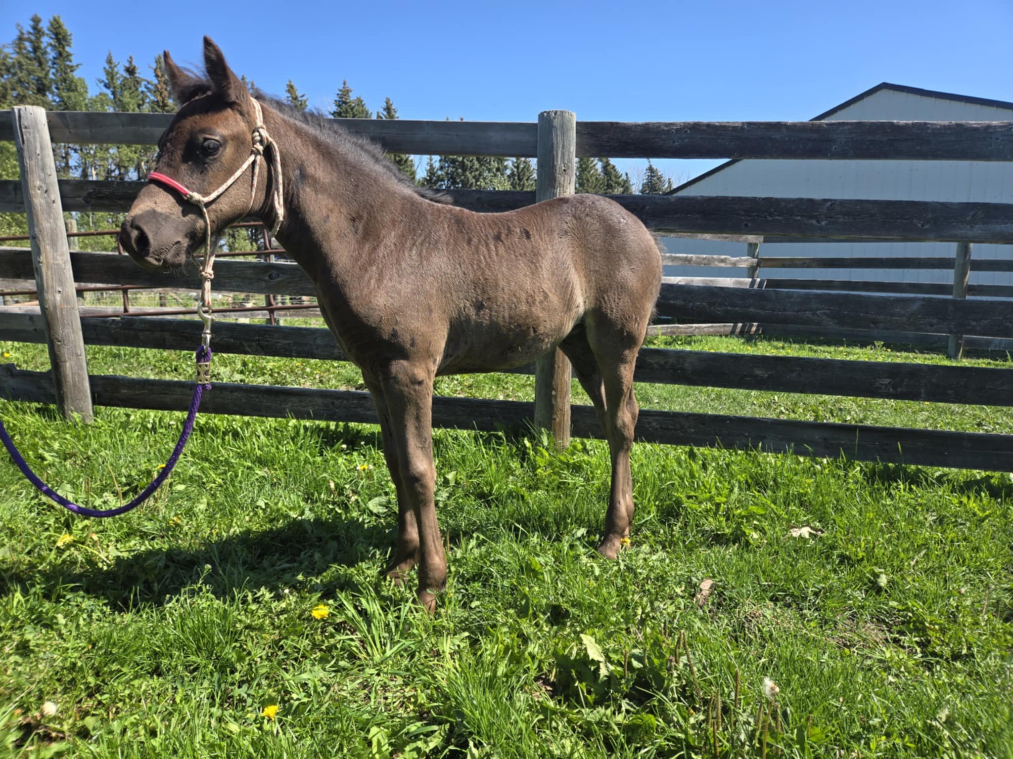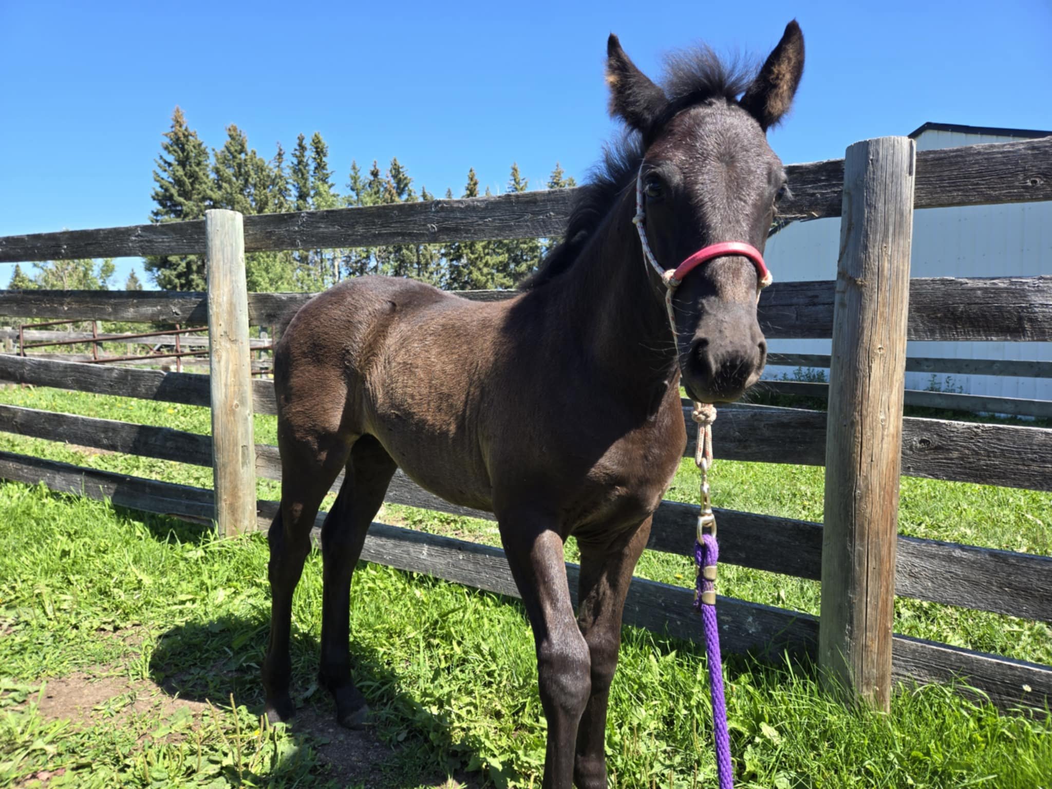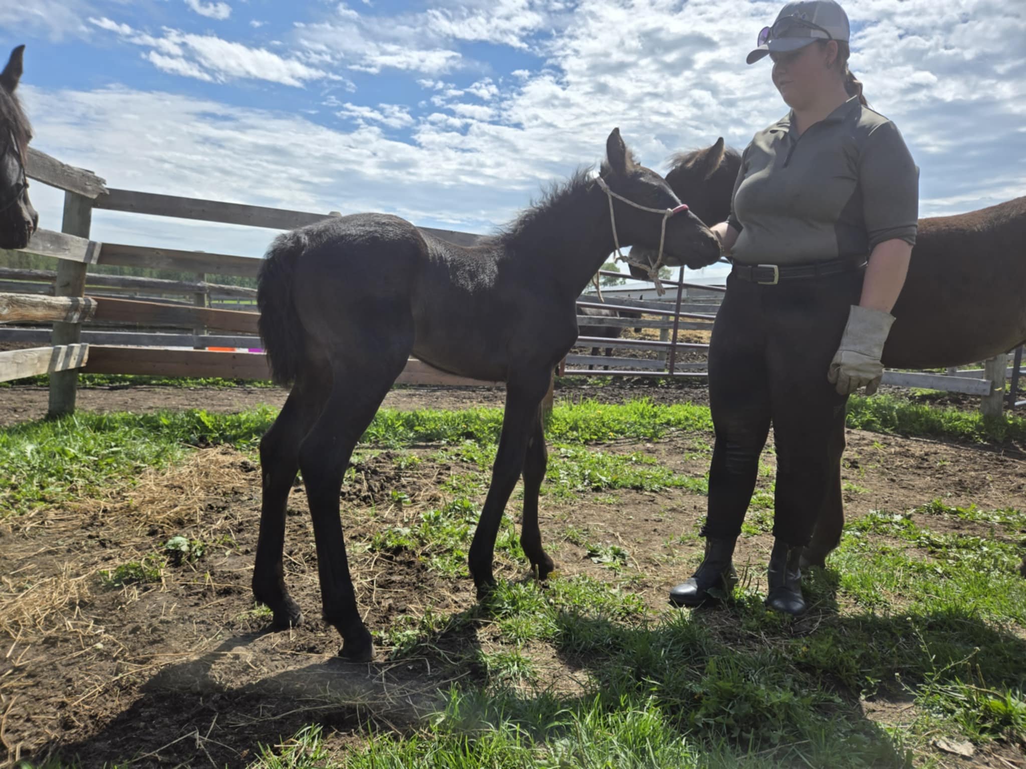 Every one of our purebred Canadian foals are handled from a young age. They can be sold as halterbroke, with trimmed hooves and easy to trailer. Our babies grow up in a herd environment with other foals on a big pasture. Hence they are used to other horses and have lots of room to run, play and learn.