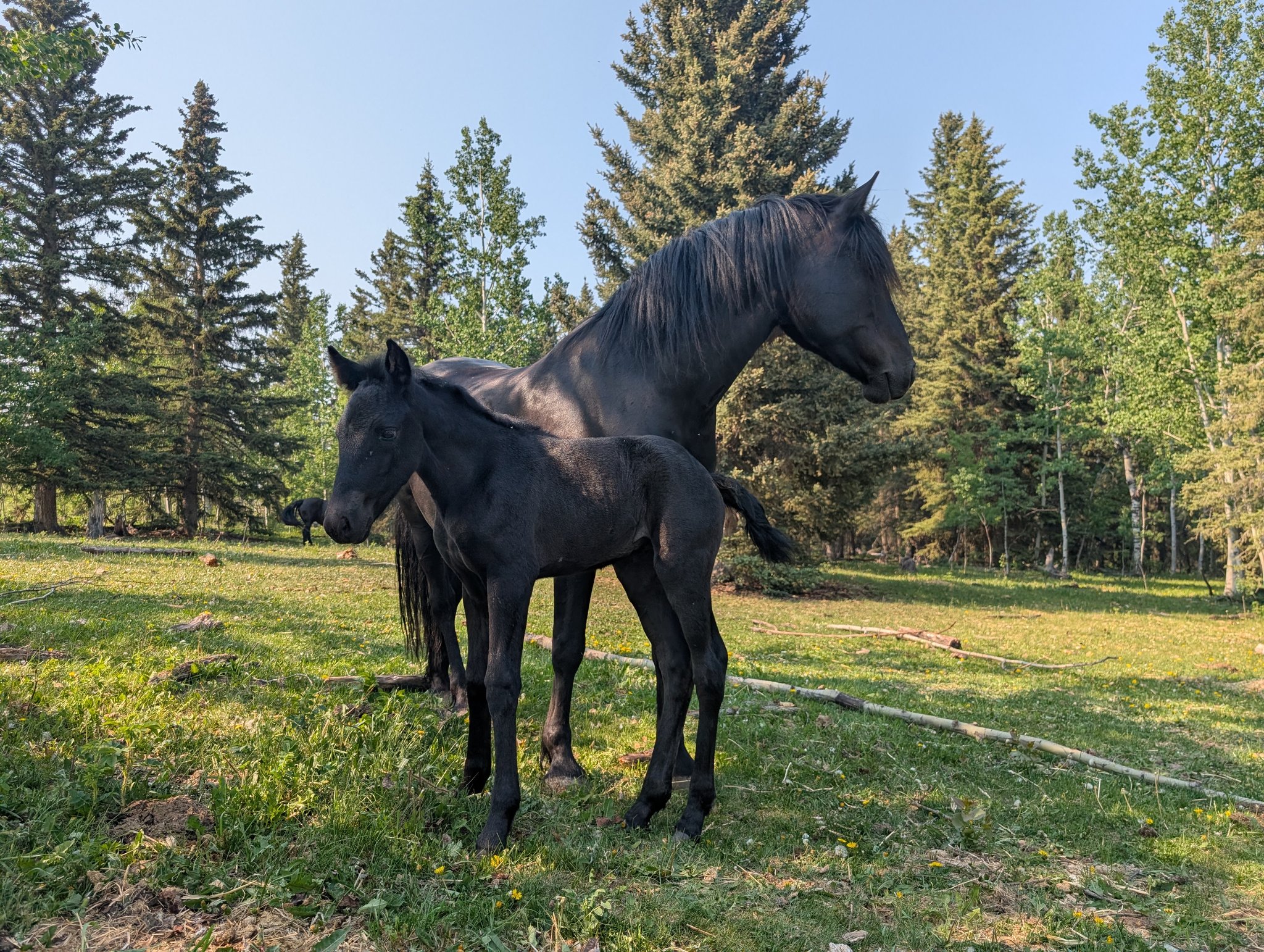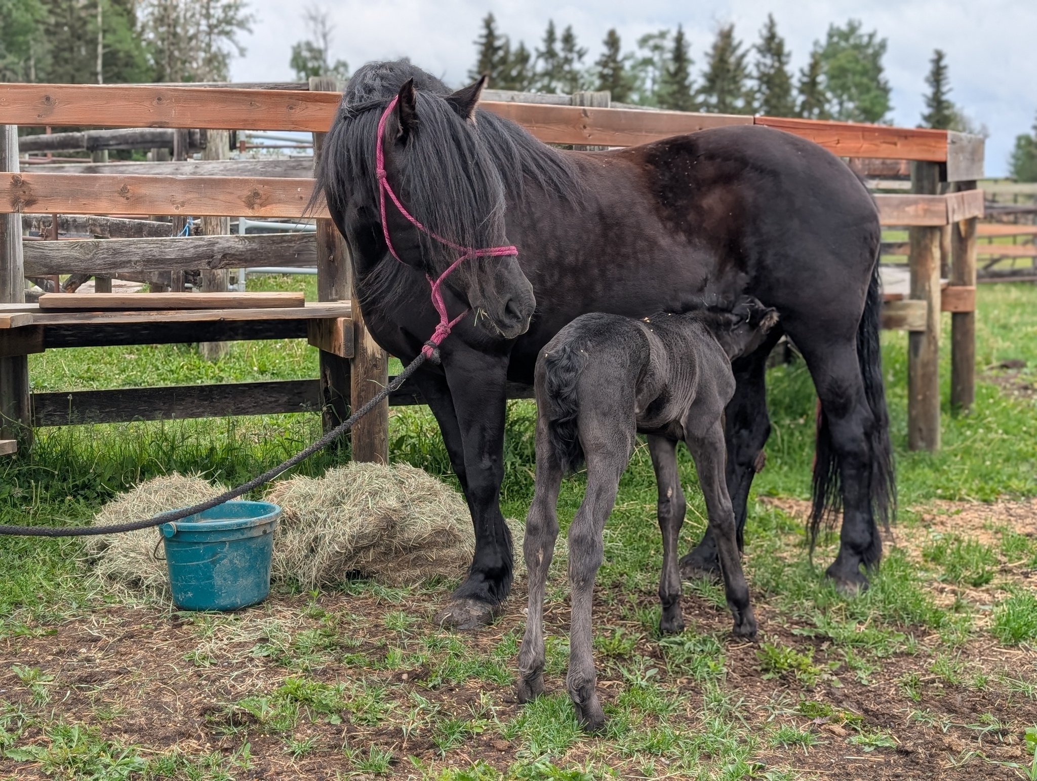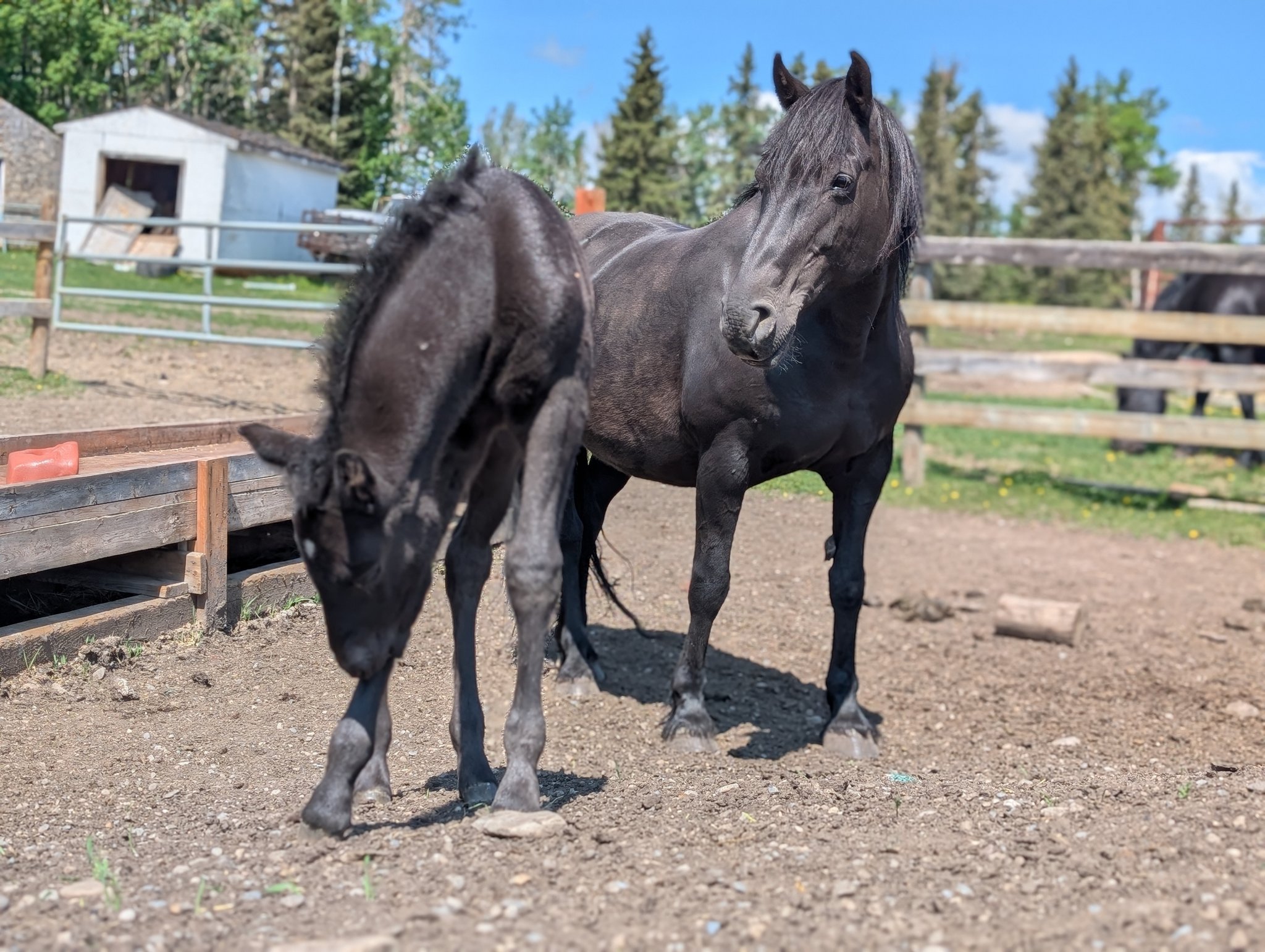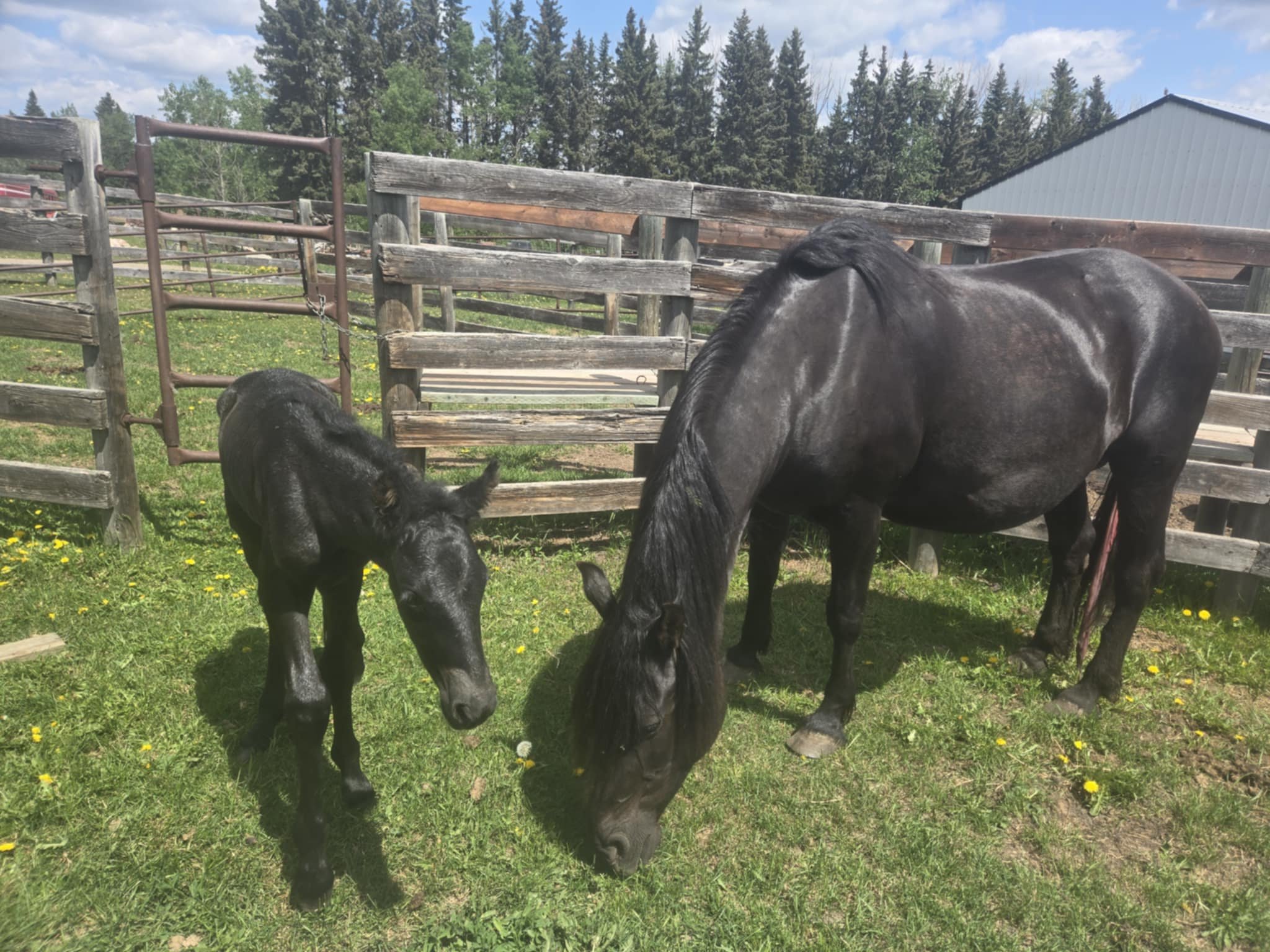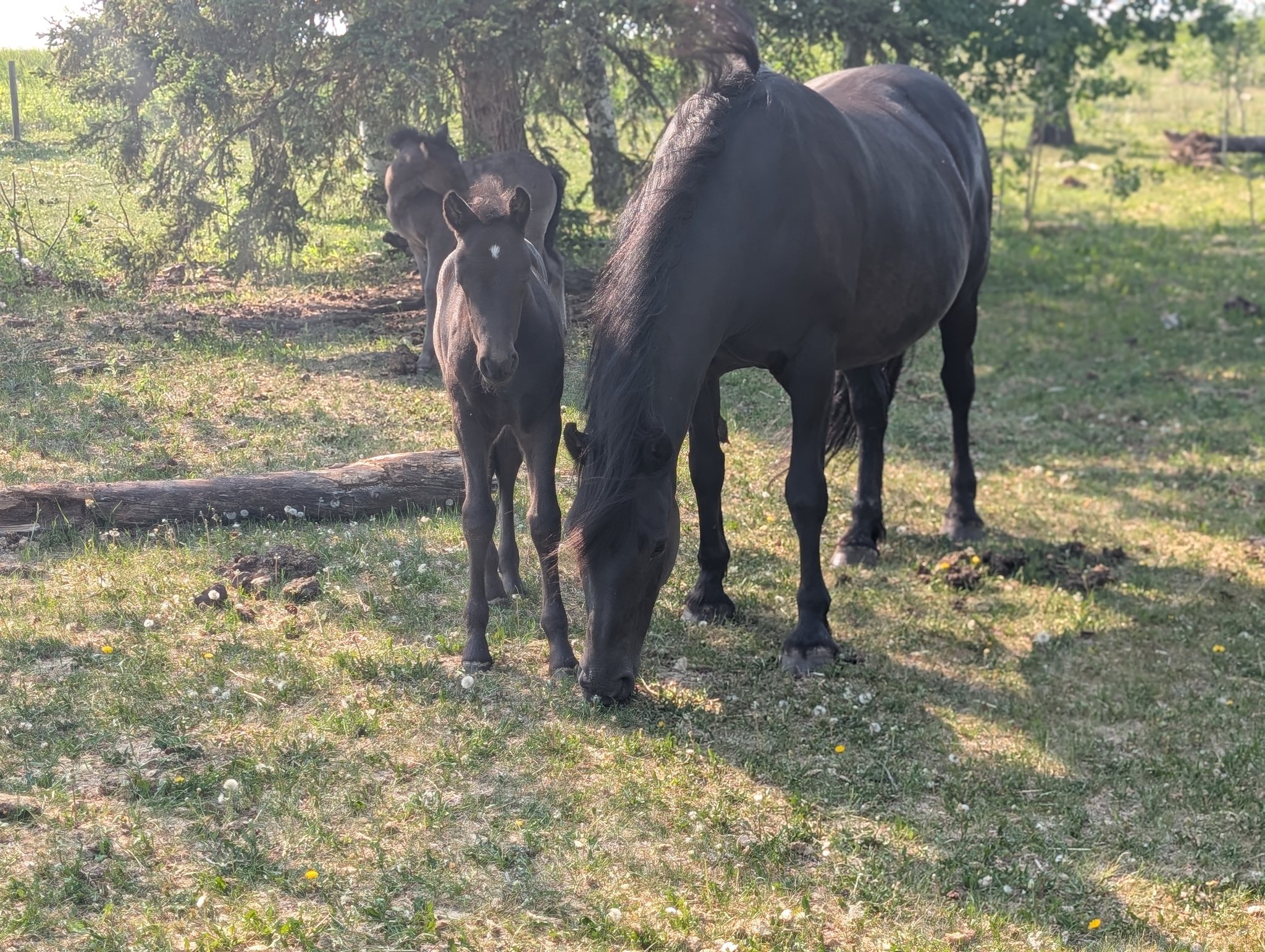 Every one of our purebred Canadian foals are handled from a young age. They can be sold as halterbroke, with trimmed hooves and easy to trailer. Our babies grow up in a herd environment with other foals on a big pasture. Hence they are used to other horses and have lots of room to run, play and learn.