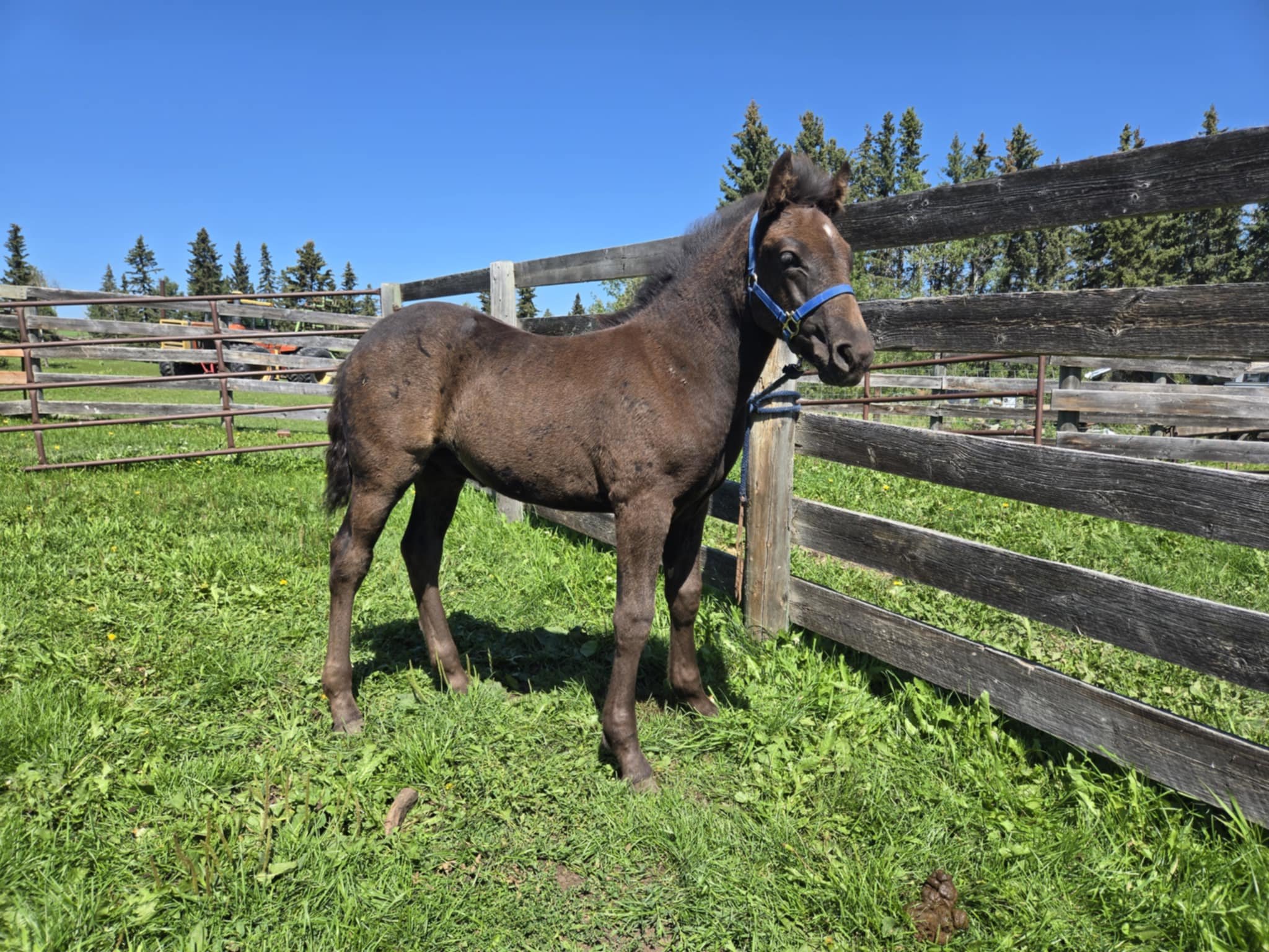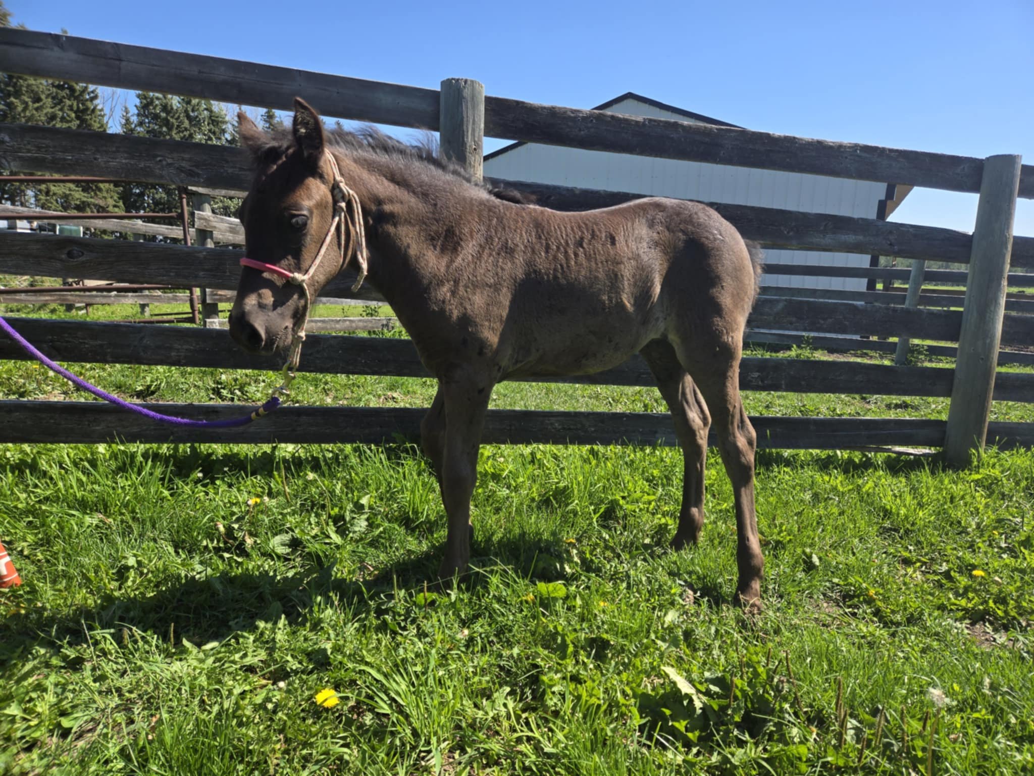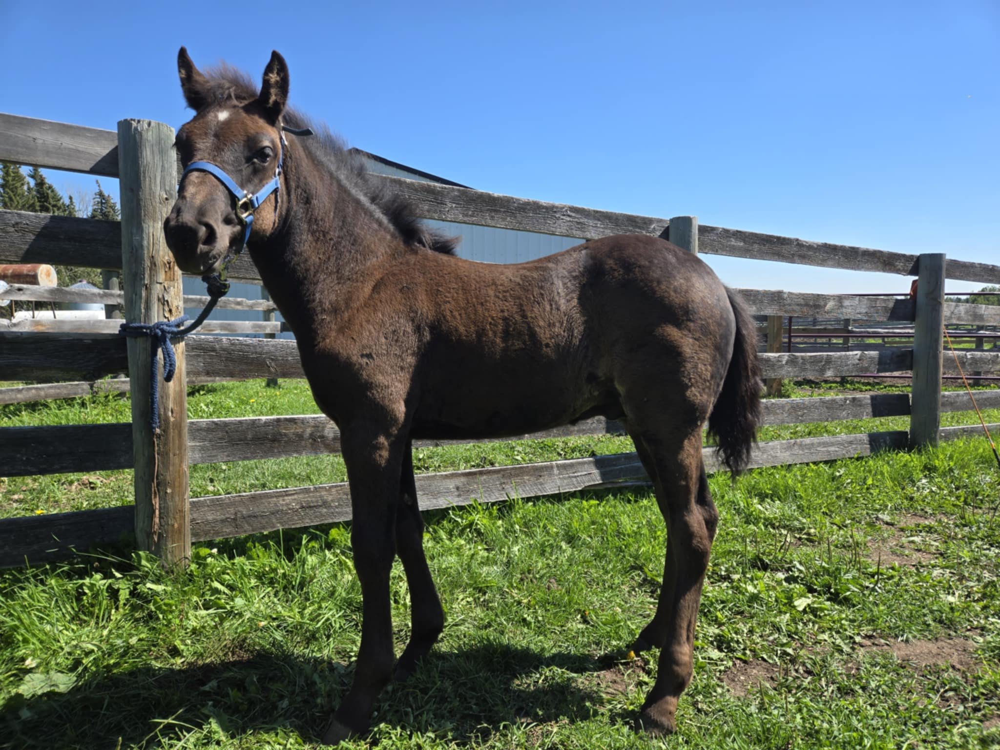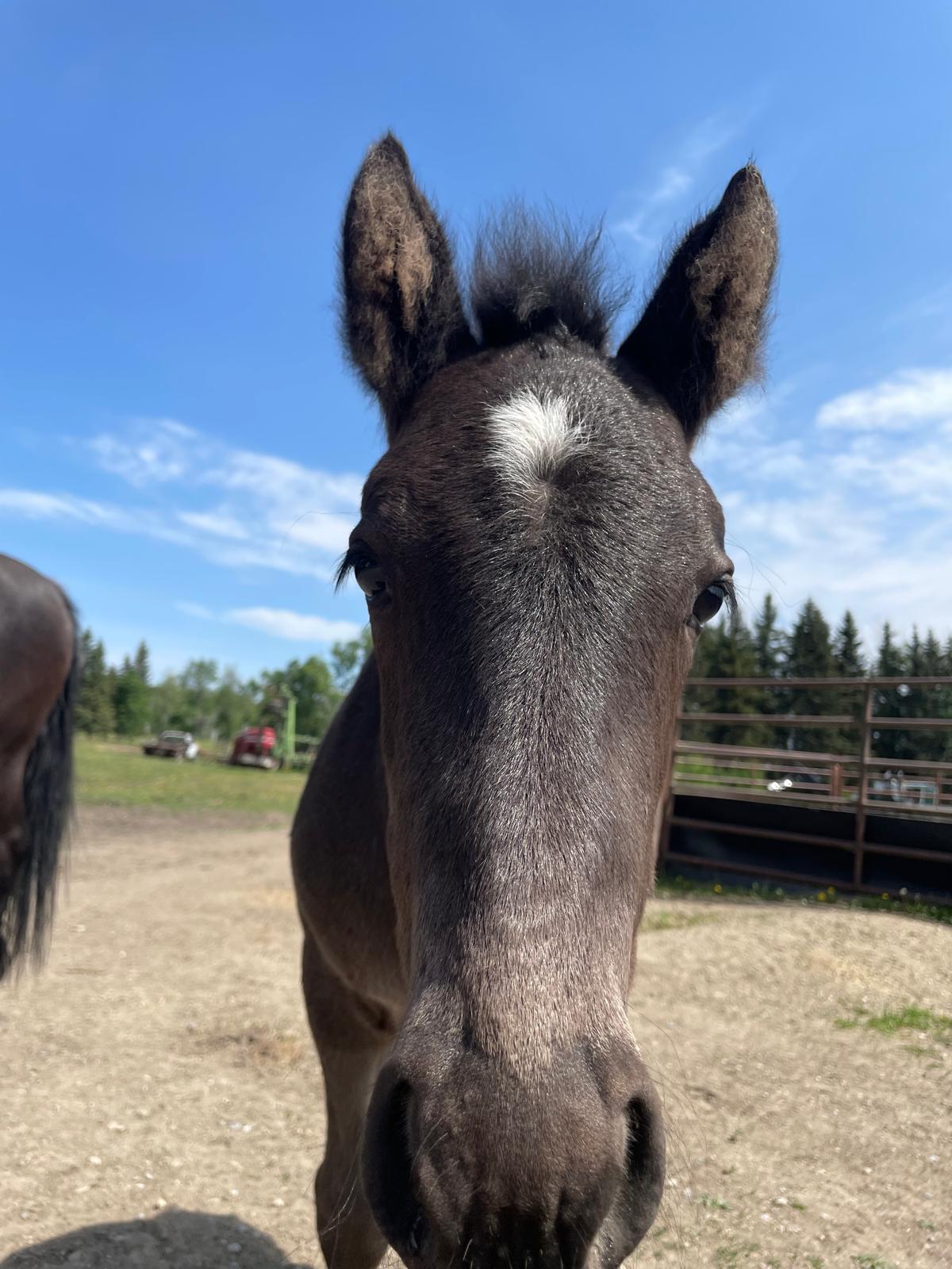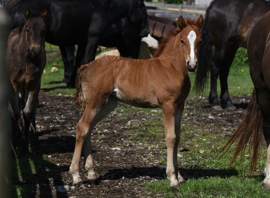 The foals are weaned from their moms between 6-8 months of age. Most have begun desensitizing to ensure the best start to their future whether that be riding or driving. Our foals usually end up in height somewhere between their dam and sire. They look for human attention and like being scratched.