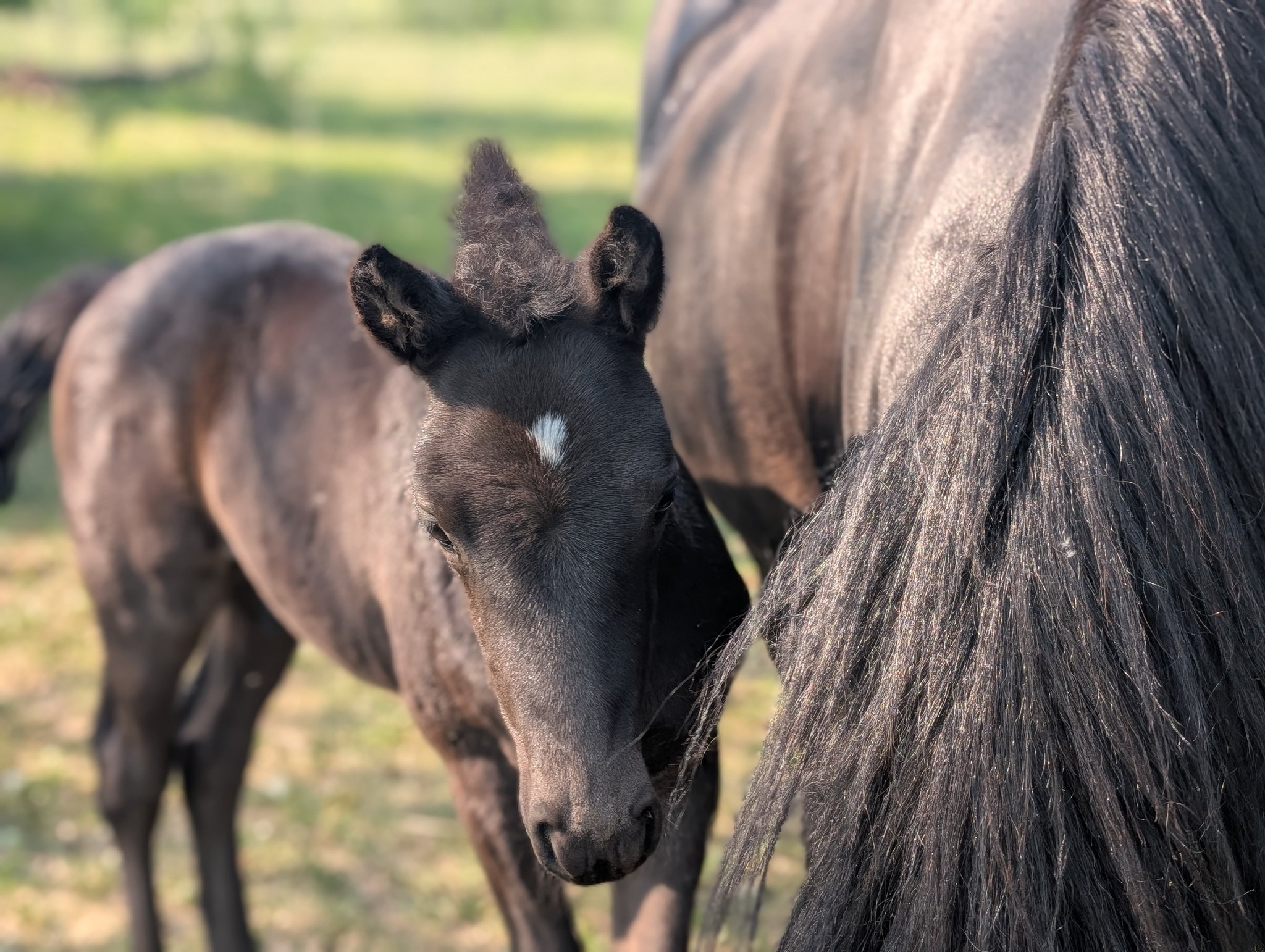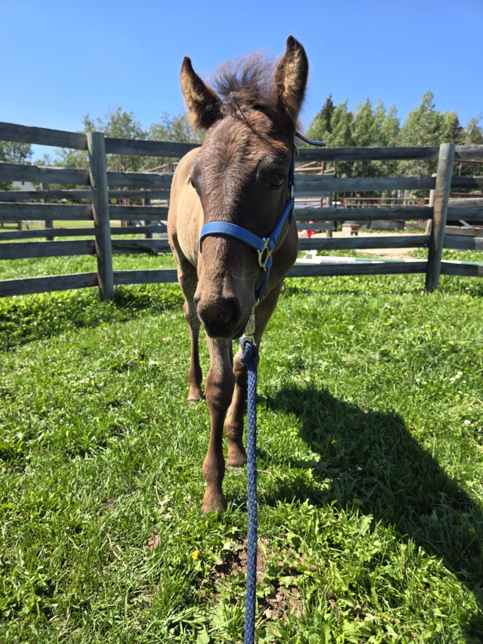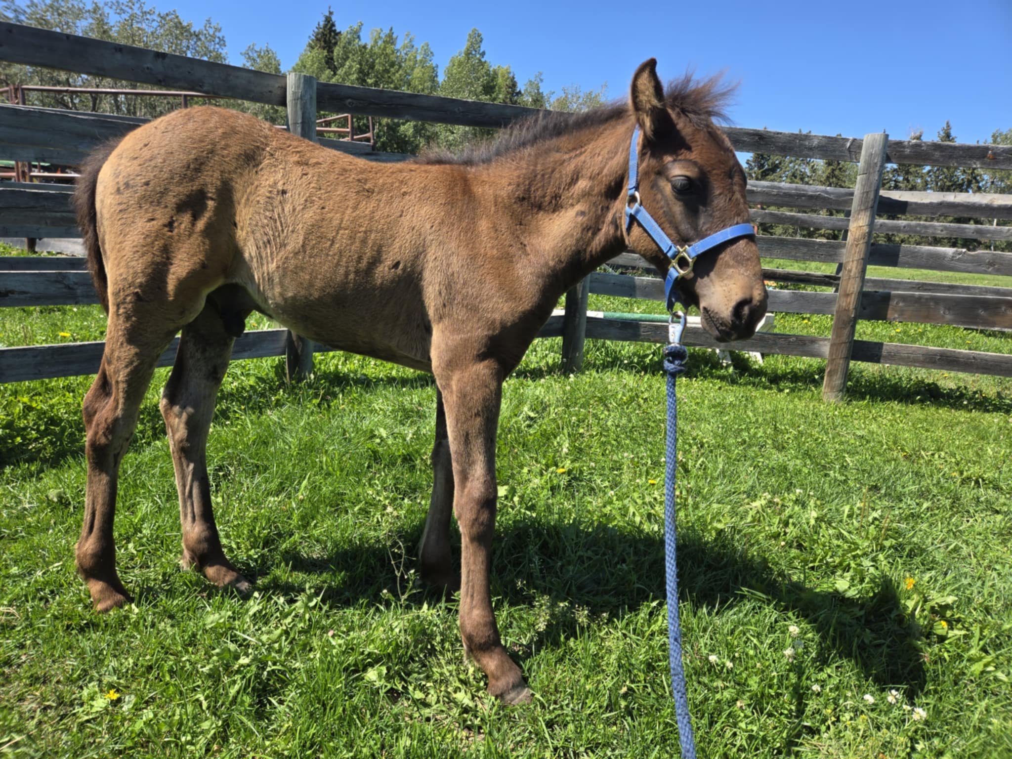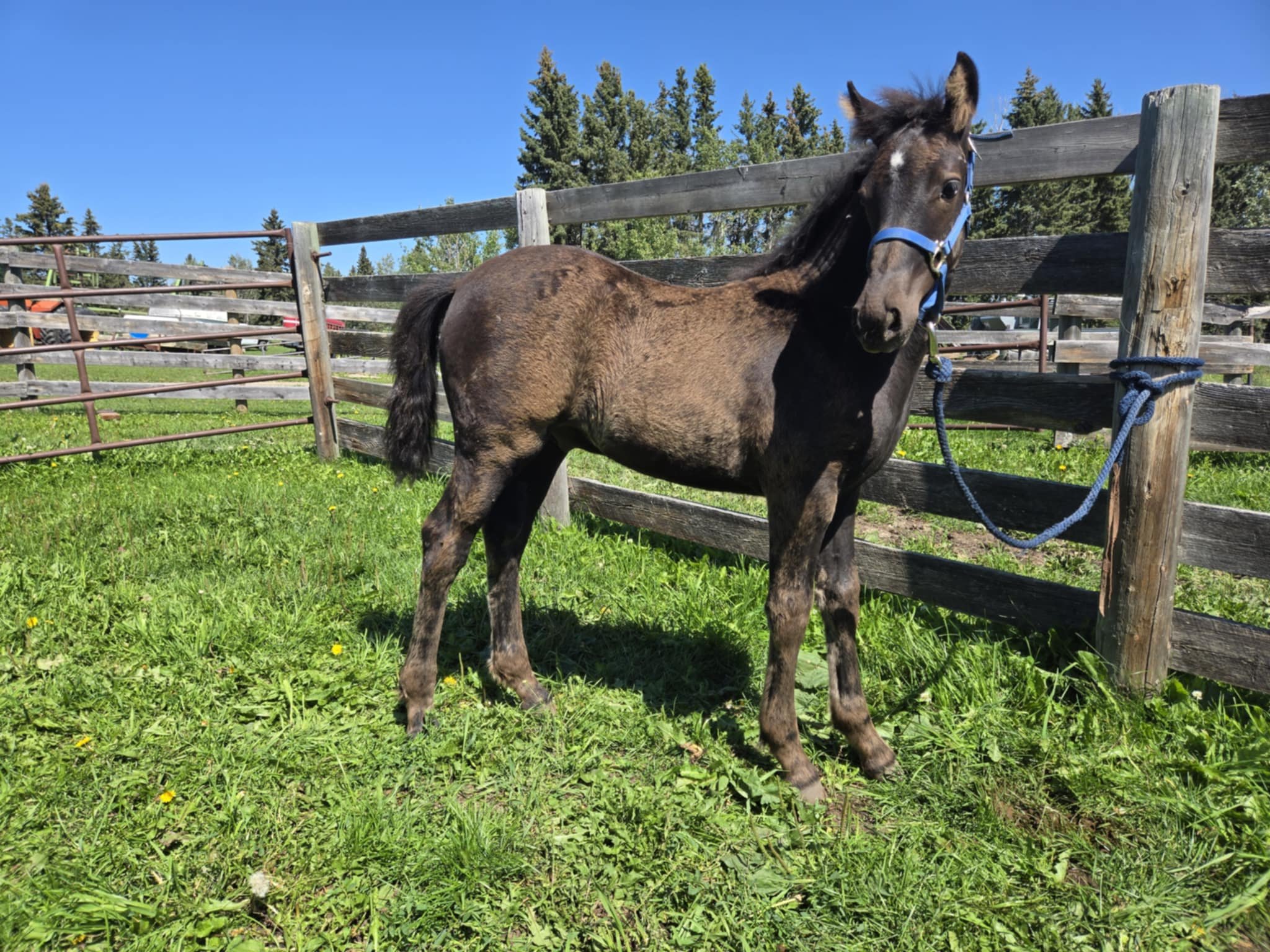 The foals are weaned from their moms between 6-8 months of age. Most have begun desensitizing to ensure the best start to their future whether that be riding or driving. Our foals usually end up in height somewhere between their dam and sire. They look for human attention and like being scratched.
