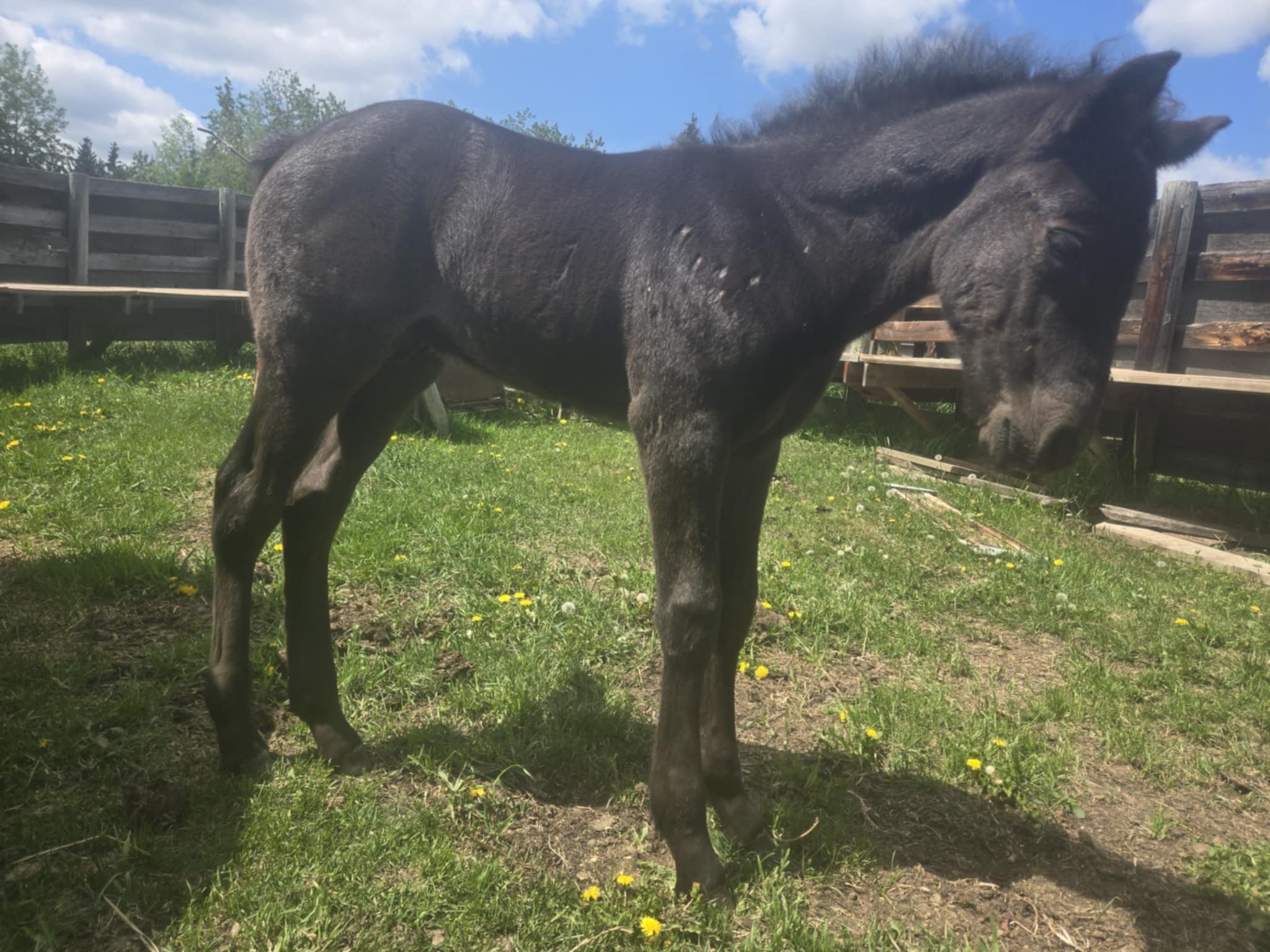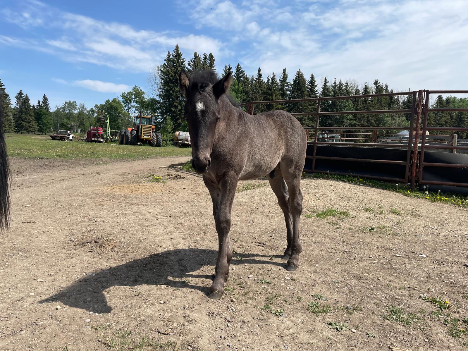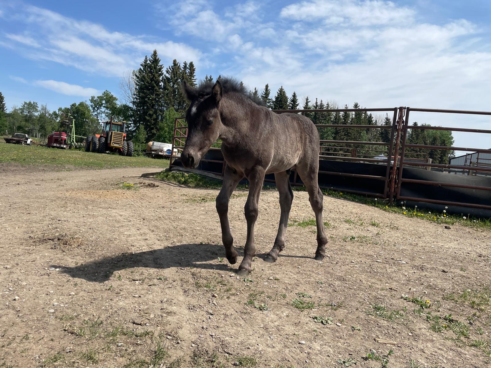 Registered Canadian Horse MYSTIC: Mystic is all black, tall colt. Very calm personality and friendly. He is going to be a great addition for any farm. Very friendly colt right there to greet you on pasture. |