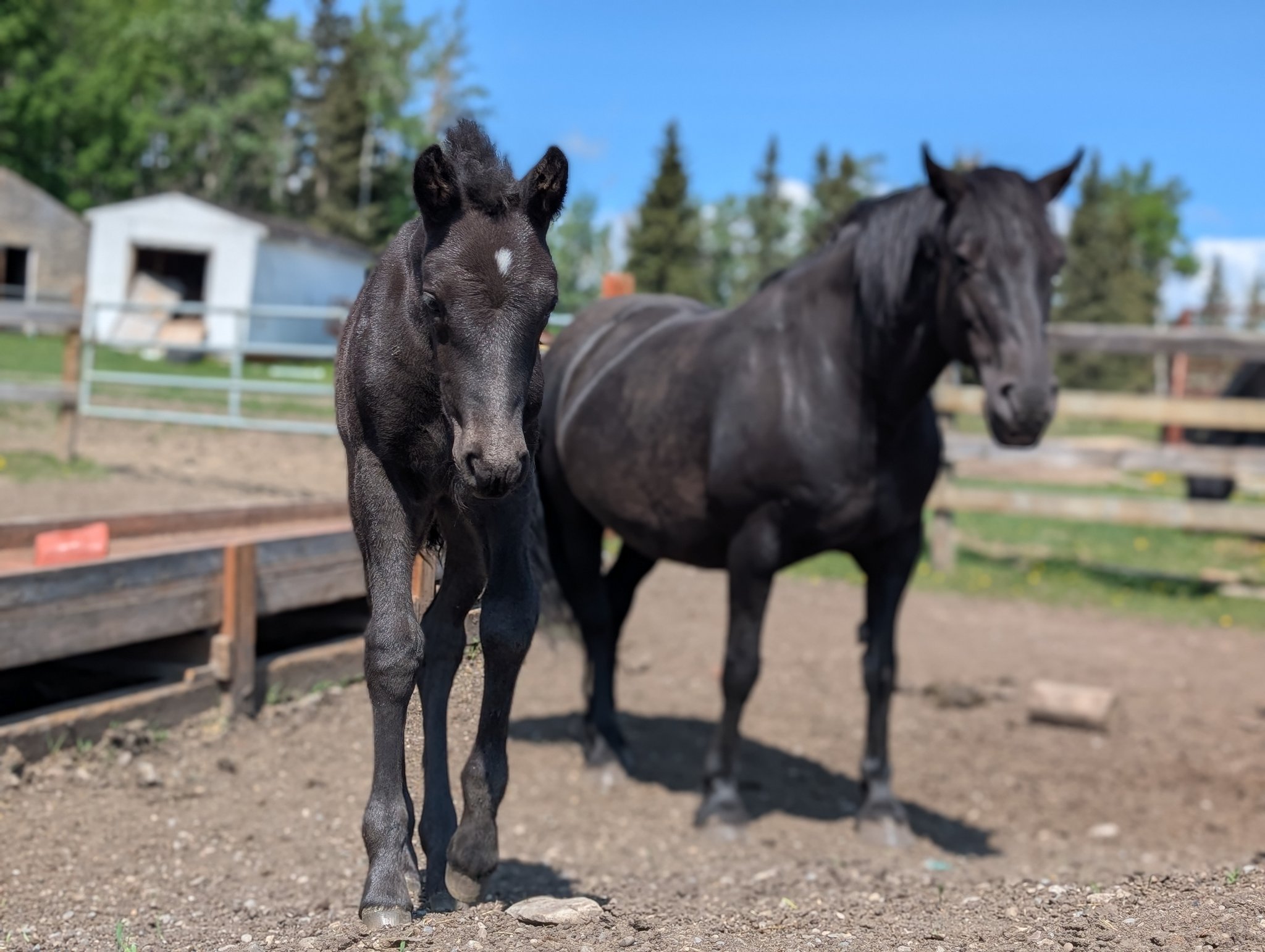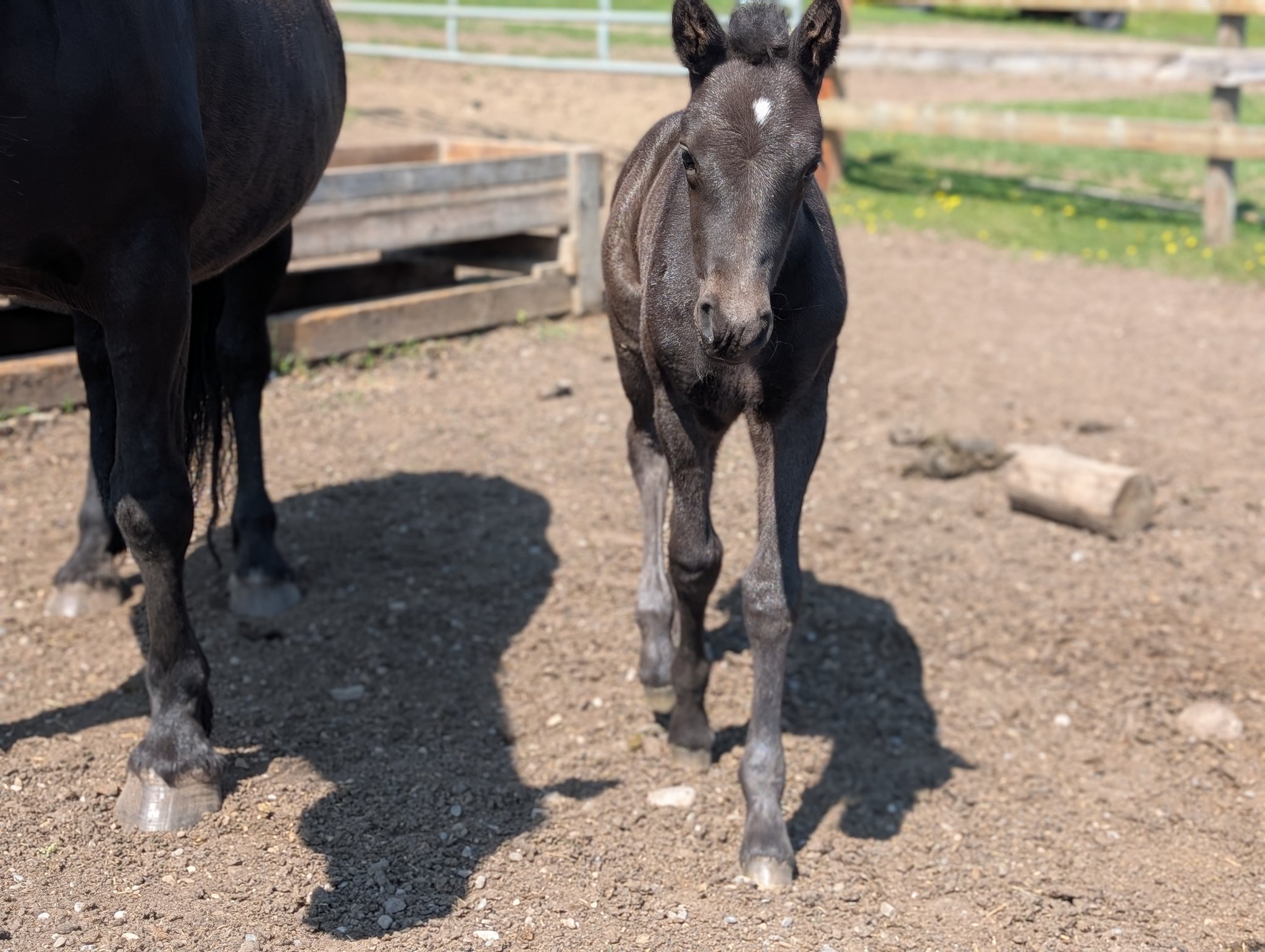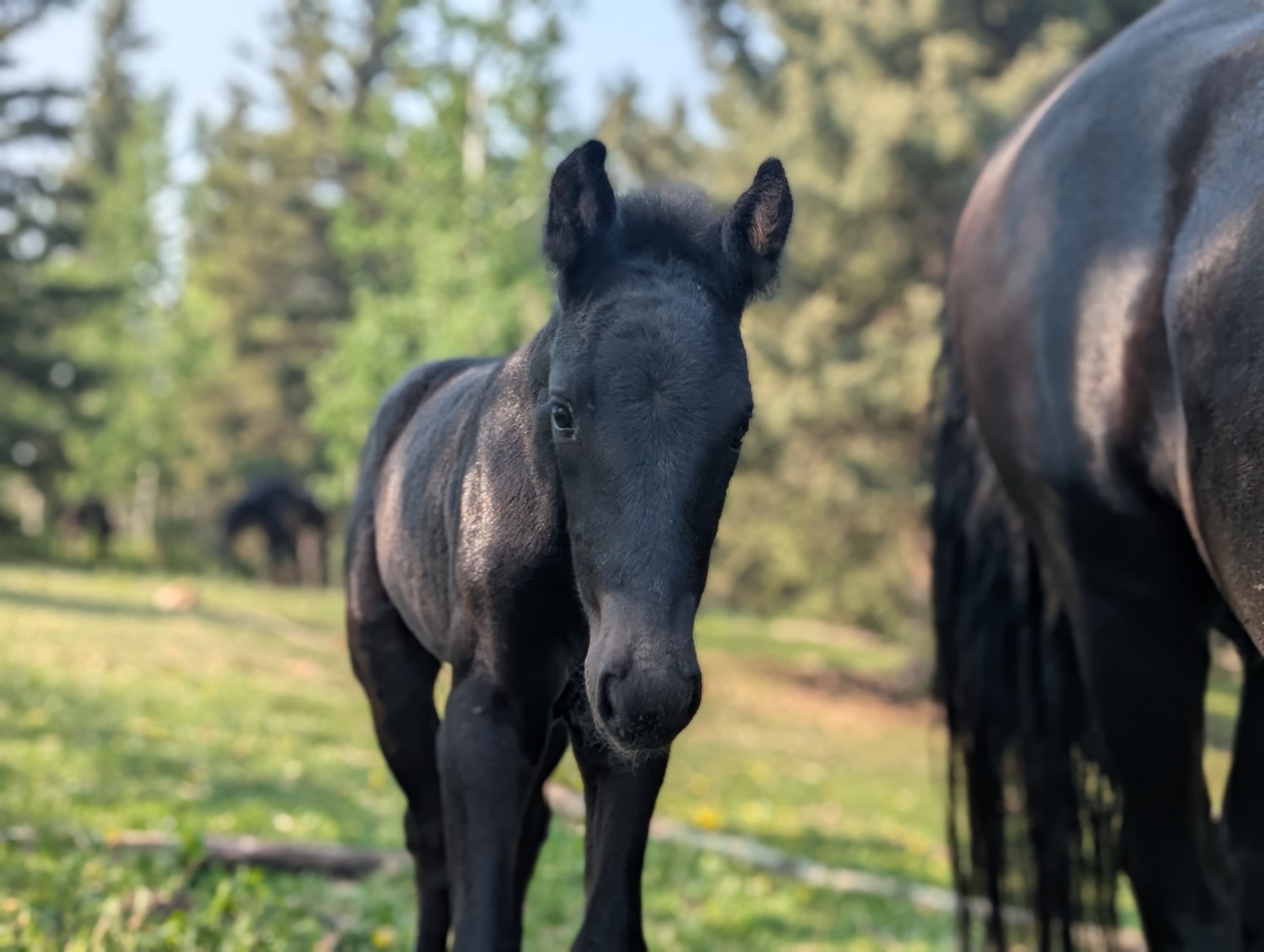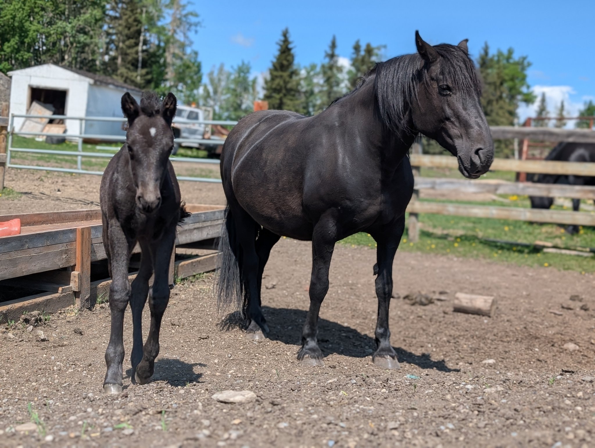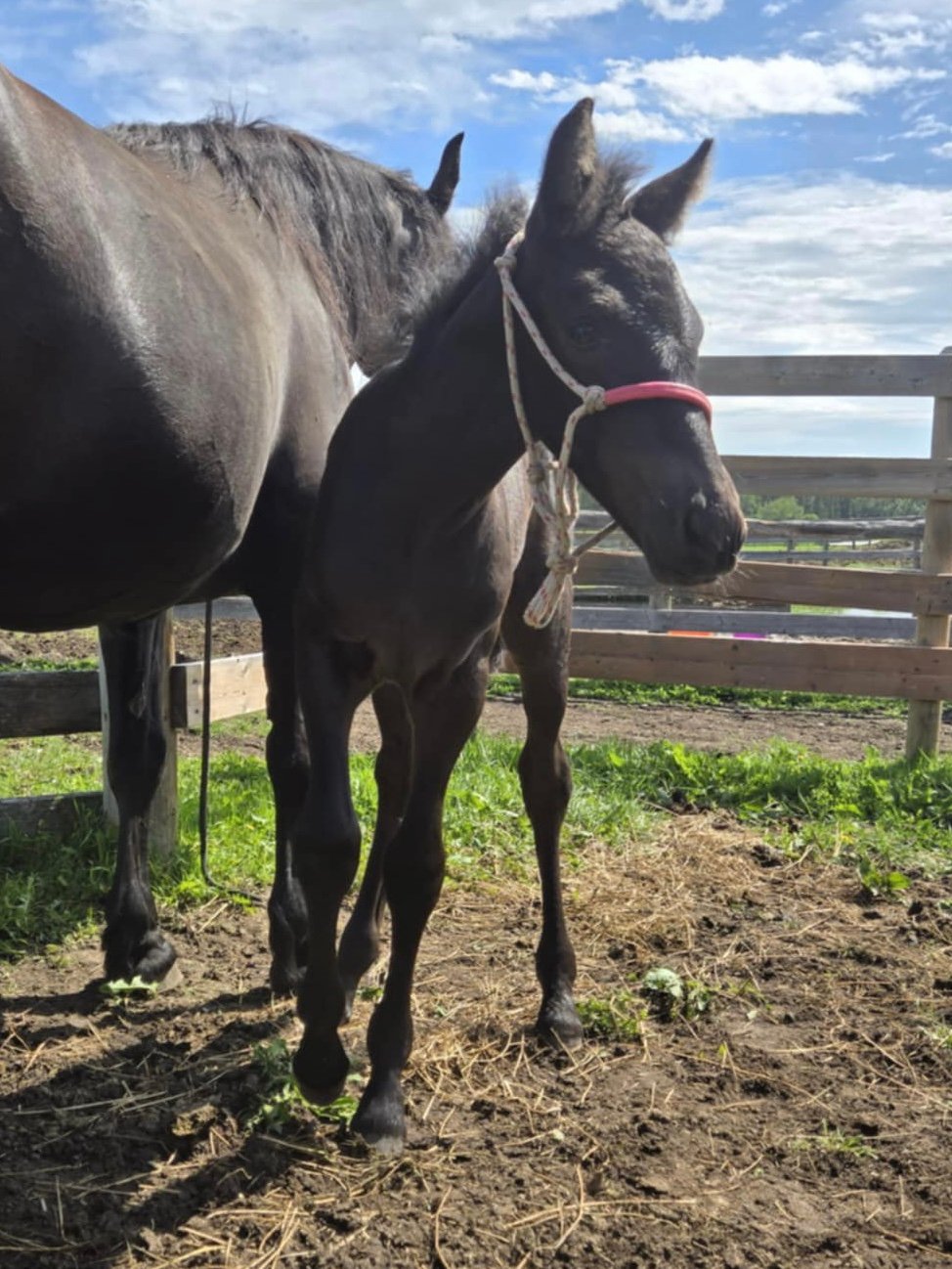Registered Canadian Horse MAJESTY: Majesty is a beautiful, all black, well put together feminine looking filly just like her mom, all black, athletic built. Majesty is sensitive and tries to please. Would be great for dressage, jumping, western or mounted trail riding horse. |